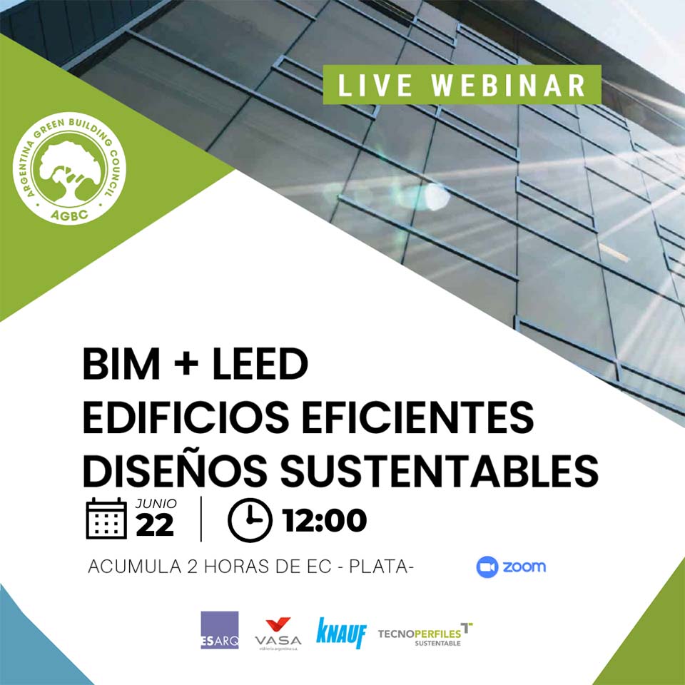 Conocé más sobre Edificios Eficientes, en el Webinar organizado por la AGBC, sobre BIM + LEED con la participación de Rodrigo Suárez de Tecnoperfiles, Eleonora LeCompte de Knauf, Elisa Zicarelli de VASA y Pablo Swiecicki de ESARQ.