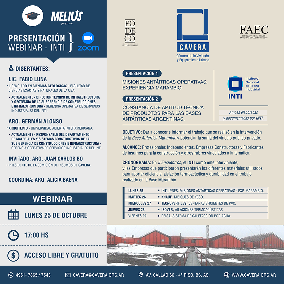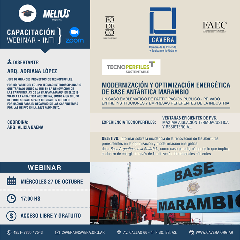 TECNOPERFILES, será parte de la jornada “Puesta en Valor en Base Marambio” organizada por CAVERA en conjunto con representantes del INTI, con la participación especial de KNAUF, ISOVER y PEISA a realizarse el próximo 27 de octubre a las 17hs a través de la plataforma Zoom.