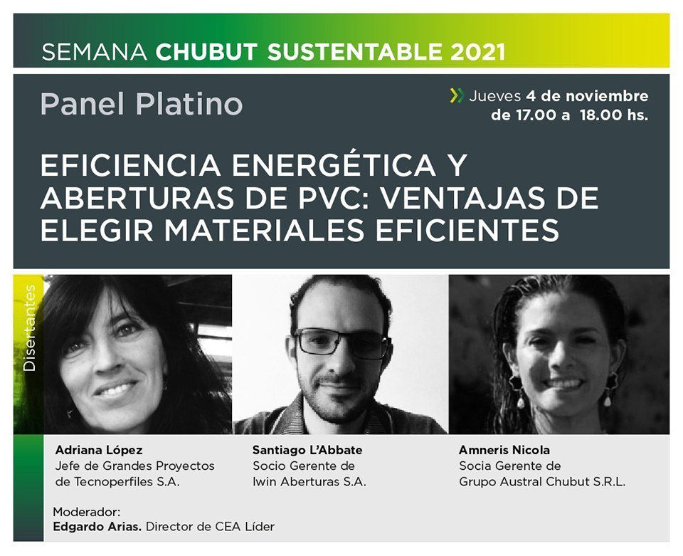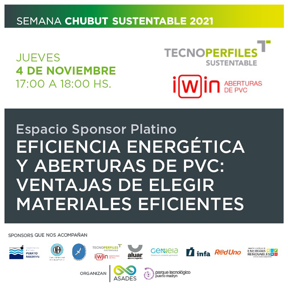 Tecnoperfiles será sponsor platino junto a Iwin, de la Semana Chubut Sustentable 2021, un evento multidisciplinario, virtual y gratuito organizado por ASADES (Asociación Argentina de Energía Renovables y Ambiente) y el Parque Tecnológico de Puerto Madryn, que se llevará a cabo del 1 al 5 de Noviembre para sumar conocimiento, nuevas propuestas y soluciones en energías renovables y arquitectura sustentable, con el fin de mejorar la calidad de vida, priorizando el bienestar de la comunidad en su conjunto.